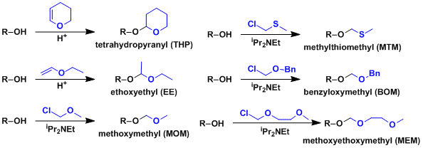 Typical acetals used to protect alcohols are as follows.