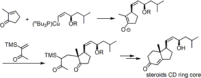 The construction of the CD ring of steroid skeleton based on the Michael addition of the organocopper reagent.[1]